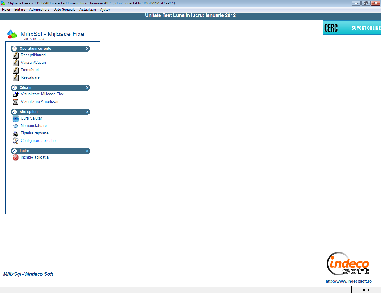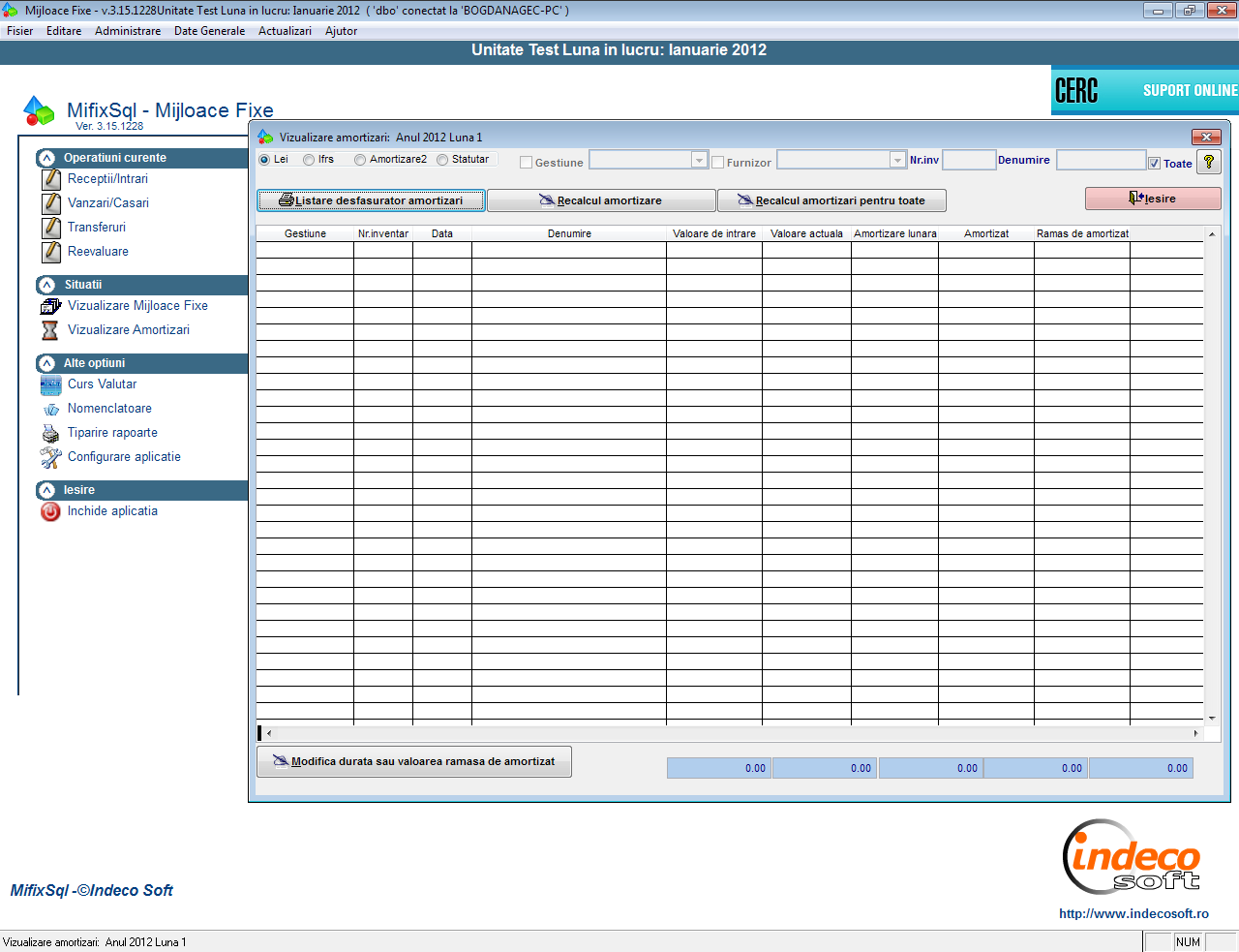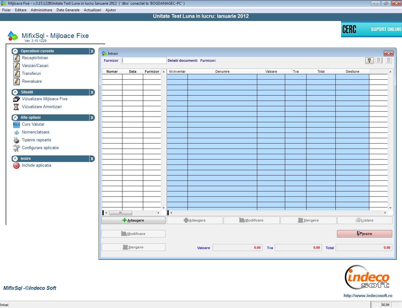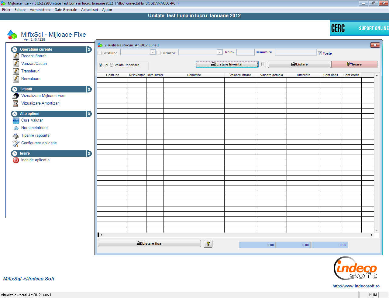 • the registration of fixed assets and the management of the characteristic elements (classification, type of asset, domain, source of financing, duration of use, inventory number – automatically generated), highlighted in the place of use;